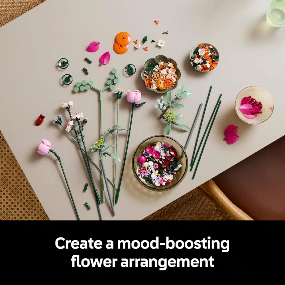 LEGO Botanicals Flower Bouquet – Artificial Flowers Set for Adults incl. Roses, Snapdragons, Poppies, Asters & Daisies – Home Decor Gift Idea for Women and Men – Botanical Collection