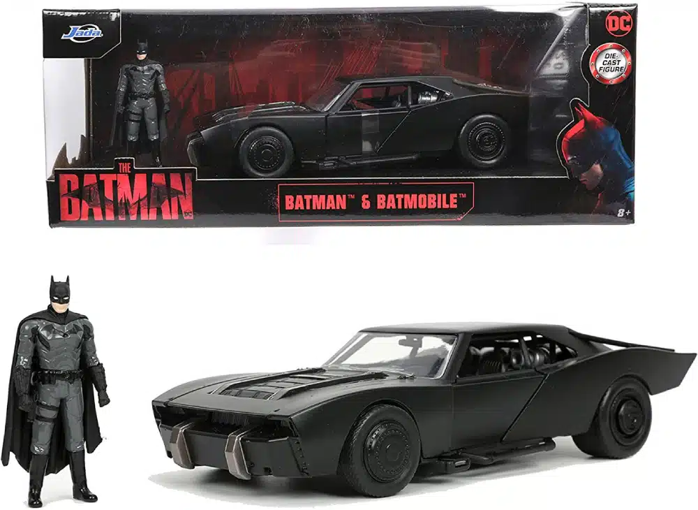 - 1:32 scale die-cast Batmobile model with 2.75 Inch Batman figurine